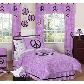 Purple Groovy Peace Sign Tie Dye Children"s Bedding 4pc Twin Set: Home & Kitchen