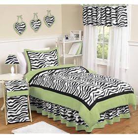 Lime Funky Zebra Childrens Bedding 4 pc Twin Set: Home & Kitchen