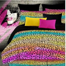 Rainbow Leopard Bright Twin 3 Piece Girls Kids Comforter Set: Home & Kitchen