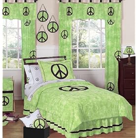 Lime Groovy Peace Sign Tie Dye Children"s Bedding 4pc Twin Set: Home & Kitchen