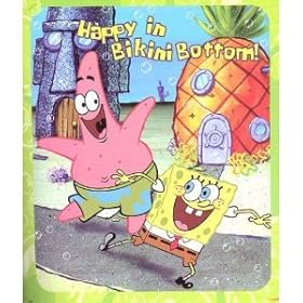 Spongebob Squarepants Fleece Throw Blanket - Happy in Bikini Bottom!: Toys & Games