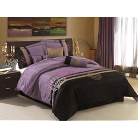 7pc King Faux Silk Purple Black Embroidery Comforter Set Bedding-in-a-bag: Home & Kitchen