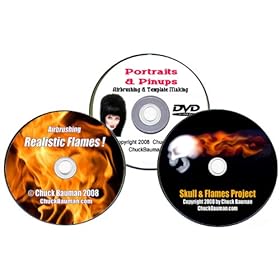 Airbrushing Art and Custom Painting Instructional DVD Set, Realistic Flames, Portraits & Pinups, Skull & Flames: Automotive