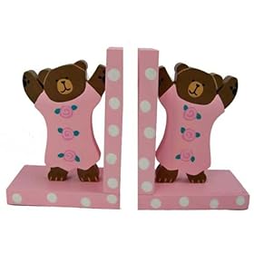 Tatutina Wood Adorable Baby Pink Teddy Bear Bookend Set: Home & Kitchen