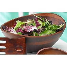 Lipper International Large Cherry Wavy Rim Bowl with Salad Hands: Kitchen & Dining