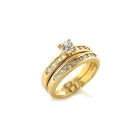 Cubic Zirconia CZ Solitaire Channel Set Wedding Ring Set Size 9: Jewelry