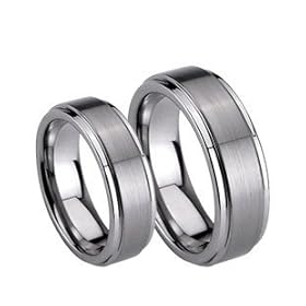 (2) Ring Set 8mm Men"s & 6mm Women Brushed Step Edge Tungsten Carbide Engagement Wedding Bands (Available Sizes 4-15 Including Half Sizes): Jewelry