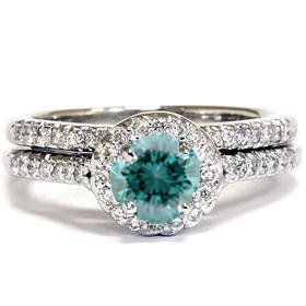 .75CT Blue Diamond Halo 14K White Gold Engagement Wedding Ring Set: Jewelry