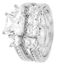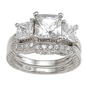 Sterling Silver Wedding Ring Set With Princess Cut Cubic Zirconia in Four Prongs with Two Princess Cut Side stones: Jewelry
