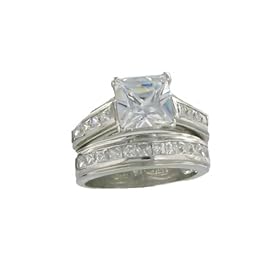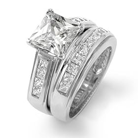 Princess Cut Sterling Silver Cz Wedding Engagement Ring Set (7): Jewelry