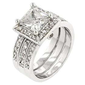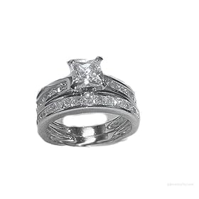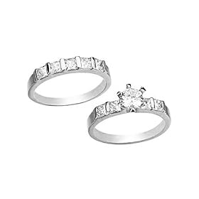 CZ WEDDING RINGS - Princess Cut One Carat Engagement & Wedding Rings: Jewelry