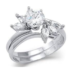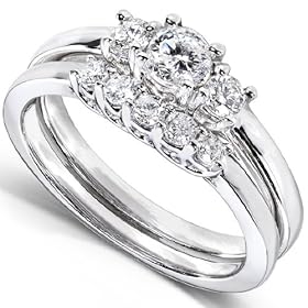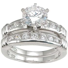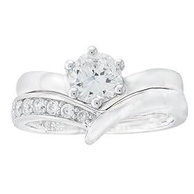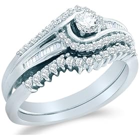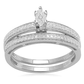 Paris Jewelry Sterling Silver Diamond Bridal Ring Set: Paris Jewelry: Jewelry