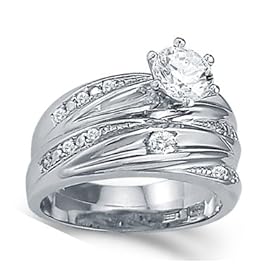 Two-Piece DiamonUltra™ Cubic Zirconia Sterling Silver Wedding Set: Jewelry