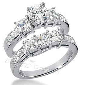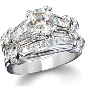 14K White Gold Round Cut & Princess Cut Diamond Matching Bridal Set (2.46ct.tw, HI Color, SI2-3 Clarity): Jewelry