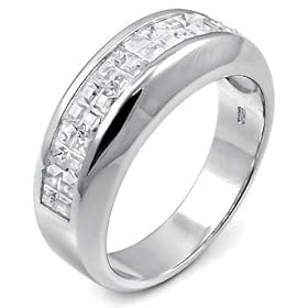 Men"s Sterling Silver Half Eternity Cubic Zirconia CZ Wedding Band Ring Sz 7: Jewelry