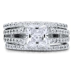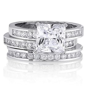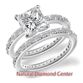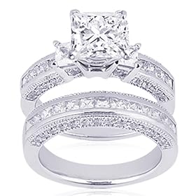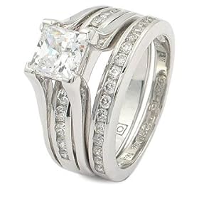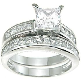 White Gold Bonded Silver 1.75ct Princess Cut Bridal Set Rings: Jewelry