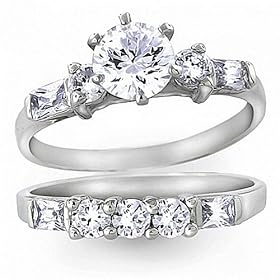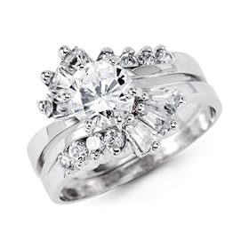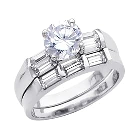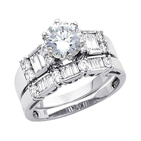 14K White Gold Round Round & Baguette CZ Cubic Zirconia Wedding Engagement Ring and Wedding Band 2 Two Piece Set - Size 7: The World Jewelry Center: Jewelry