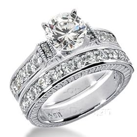 14K White Gold Round Cut Diamond Matching Bridal Set (1.85ct.tw, GH Color, VS2 Clarity): Jewelry