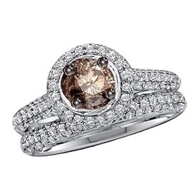 1 1/4 Carat Chocolate & White Diamond 14k White Gold Bridal Set: SeaofDiamonds: Jewelry