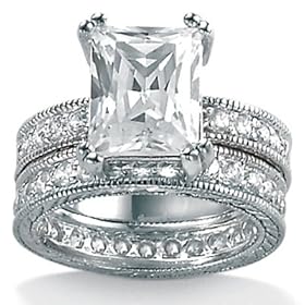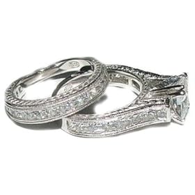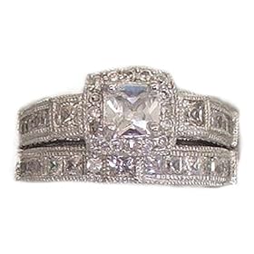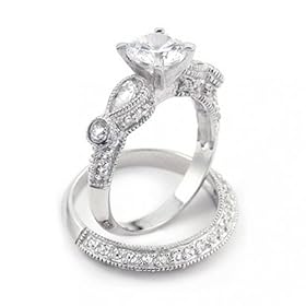 Antique Style Cz Wedding Engagement Ring Set (9): Jewelry