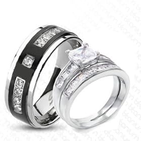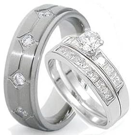 New Titanium His and Her"s Wedding Ring Matching Set: Rumors Jewelry Company: Jewelry