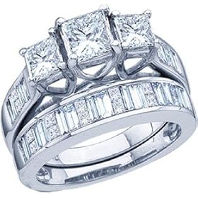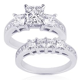 2 Ct Princess Cut 3 Three Stone Diamond Wedding Engagement Rings Set SI1 14K Gold: Fascinating Diamonds: Jewelry