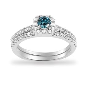 14k White Gold Blue Diamond Center with Diamonds Bridal Ring Set (3/4 cttw I-J Color, I1-I2 Clarity), Size 8: Jewelry