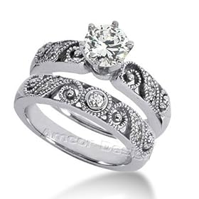 1.50CT Diamond Vintage Engagement Wedding Ring Set Engraved Antique Filigree: Jewelry