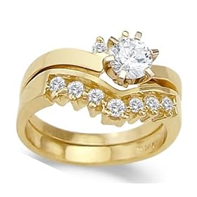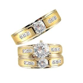 14k Yellow Gold, Trio Three Piece Wedding Ring Set with Lab Created Gems: Jewelry