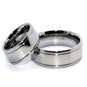 Blue Chip Unlimited - Matching 8mm Classic Polished Titanium Rings with 2 Grooves His & Hers Rings Wedding Bands Engagement Rings (Available in Whole & Half Sizes 4-16): Jewelry
