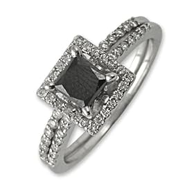 1.00cttw Natural White Round Diamonds (SI-Clarity,G-H-Color) with Princess Shape Natural Treated Black Diamond (AAA-Clarity, Deep Black-Color) Bridal Set (Engagement Ring with Matching Band) in 14K White Gold.size 8.5: TriJewels: Jewelry