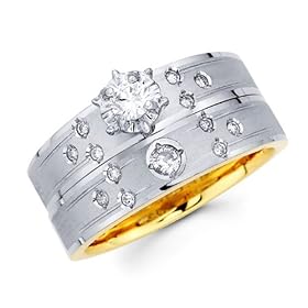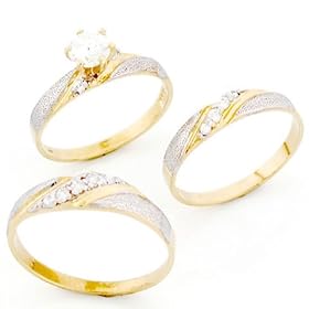 10k Two Tone Gold His & Hers Trio CZ Wedding Ring Sets: Jewelry