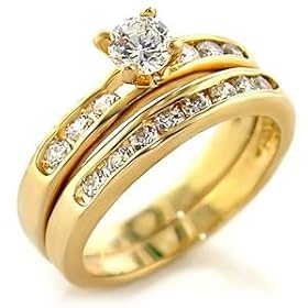 W-293 Elegant Two Piece Wedding Ring Set 18kt Gold EP Sizes Available in 5-10 Lifetime Guarantee Anniversary Engagement Band (8): Jewelry