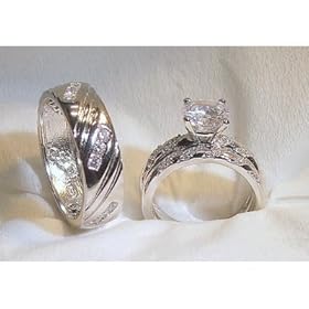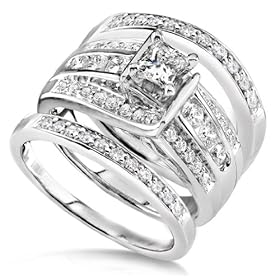 His & Hers 3 Piece Wedding Engagement Ring Set White Gold .925 (Womens 7 Mens 12): Jewelry
