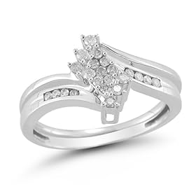 10k White Gold Marquise Cluster Diamond Bypass Bridal Ring Set (1/4 cttw I-J Color, I2-I3 Clarity), Size 7: Jewelry