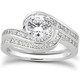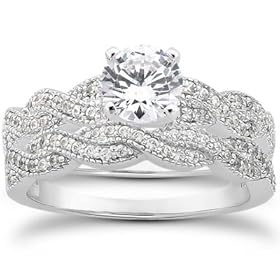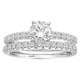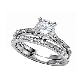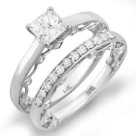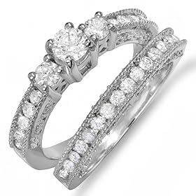 CZ Engagement Rings Bridal Wedding Set 14k White Gold (1.50 Carat), Size 5.5: Jewel Roses: Jewelry