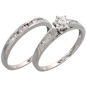 14k White Gold 2-Piece Wedding Ring Set, w/ 0.35 Carat Baguette & Brilliant Cut Diamonds, 1/4" (6mm) wide, size 6: Jewelry