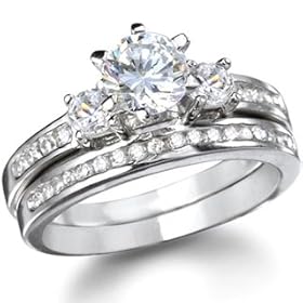 Ana"s Round Three Stone Cubic Zirconia Wedding Ring Set - 6: Jewelry