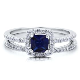 Cushion Sapphire Cubic Zirconia CZ Sterling Silver 2Pc Bridal Ring Set - Nickel Free Engagement Wedding Ring Set Size 5: Jewelry