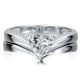 Sterling Silver 925 Heart Cut Cubic Zirconia CZ Solitaire 2pc Ring Set - Nickel Free Engagement Wedding Ring Set Size 4.5: Jewelry