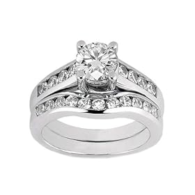 1 Carat Diamond 14K White Gold Bridal Engagement Ring and Wedding Band Set: Jewelry
