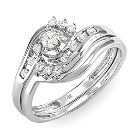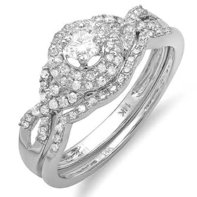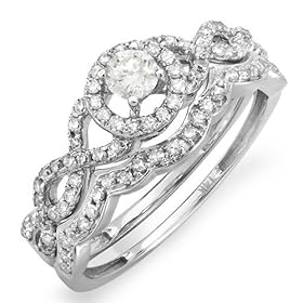14k White Gold .50 ct Round Center Diamond Bridal Ring Set (1.00 cttw, H-I Color, I1-I2 Clarity), Size 8: Jewelry
