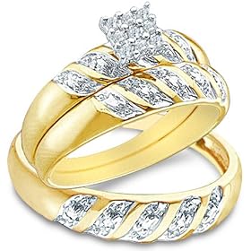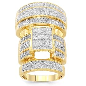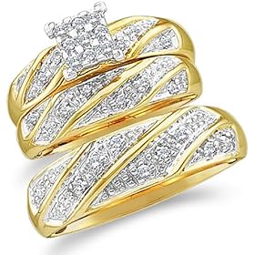 Stunning Yellow Gold 3 Pc. Genuine Diamond Wedding Set for Him and Her " Size 7 For Her and Size 10 For Him ": Jewelry