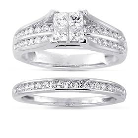 14k White Gold Princess-Cut Quad Diamond Bridal Ring Set (1/2 cttw H-I Color, I1-I2 Clarity), Size 8: Jewelry