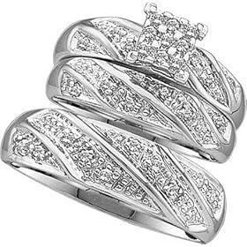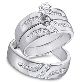 Stunning White Gold 3 Pc. Genuine Diamond Wedding Set for Him and Her " Size 7 For Her and Size 10 For Him ": Jewelry