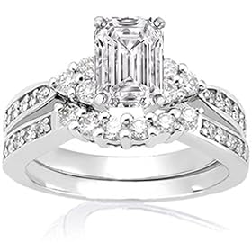 1.1 Ct Emerald Cut Diamond Engagement Wedding Rings Pave-Set VVS1 CUT:VERY GOOD 14K WHITE GOLD: Fascinating Diamonds: Jewelry