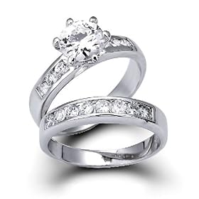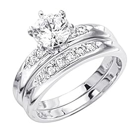 White Gold CZ Solitaire Engagement Wedding Rings Set: Jewelers Mart: Jewelry
