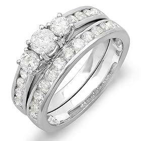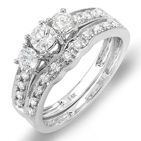 14k White Gold Brilliant Round Cut Diamond Ladies Bridal Ring Engagement Matching Wedding Set (1.25 cttw, G-H Color, I1-I2 Clarity): Jewelry