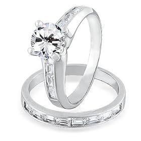 Bling Jewelry Bridal Engagement Wedding Ring Set Baguette and Round CZs: Jewelry