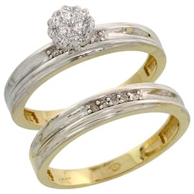 10k Gold 2-Piece Diamond Engagement Ring Set, w/ 0.09 Carat Brilliant Cut Diamonds, 1/8 in. (3.5mm) wide, Size 6.5: Jewelry